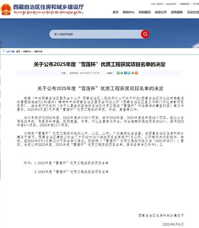 8月7日,西藏自治區(qū)住房和城鄉(xiāng)建設(shè)廳公布2025年度“雪蓮杯”優(yōu)質(zhì)工程獲獎(jiǎng)項(xiàng)目名單,由西藏開投吉雅光伏公司投資建設(shè)的昌都察雅縣吉塘鎮(zhèn)20萬(wàn)千瓦+16萬(wàn)千瓦時(shí)儲(chǔ)能牧光互補(bǔ)復(fù)合型光伏發(fā)電項(xiàng)目榮獲該獎(jiǎng)項(xiàng)。