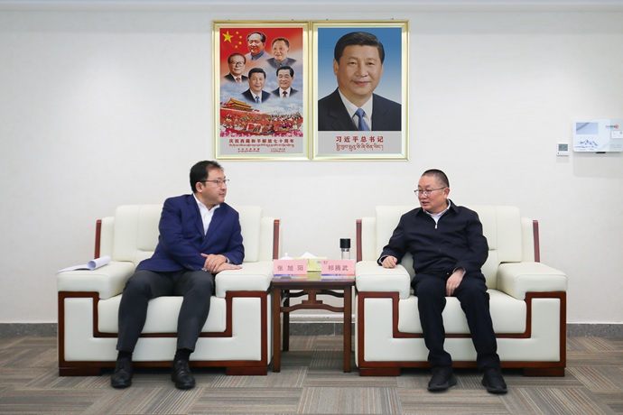 祁騰武對張旭陽一行來訪表示歡迎,并介紹了西藏開投集團概況、生產(chǎn)經(jīng)營和投資建設情況。他表示,光大銀行作為國內(nèi)領先的綜合性金融機構(gòu),在綠色金融、創(chuàng)新金融服務方面具有顯著優(yōu)勢。西藏開投集團與光大銀行已有良好的合作關系,期待與光大銀行在多層次、多領域開展更加深入務實合作,歡迎光大銀行參與西藏開投清潔能源開發(fā)建設,共同探索“科技賦能產(chǎn)業(yè)、金融助力發(fā)展”新路徑,助力地區(qū)經(jīng)濟社會發(fā)展和國家“雙碳”戰(zhàn)略目標實現(xiàn)。
