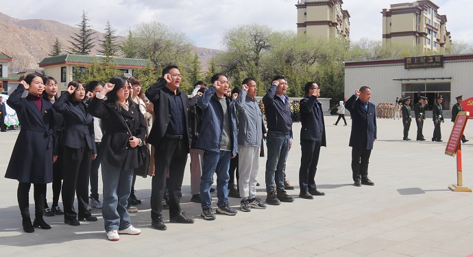 拉薩市烈士陵園內(nèi)松柏蒼翠、莊嚴(yán)肅穆。在革命烈士紀(jì)念碑前,參加活動的全體黨員職工重溫了入黨誓詞、合唱國歌并敬獻(xiàn)鮮花、清掃陵園,向革命先輩們致以最崇高的敬意和表達(dá)無盡哀思與懷念。
