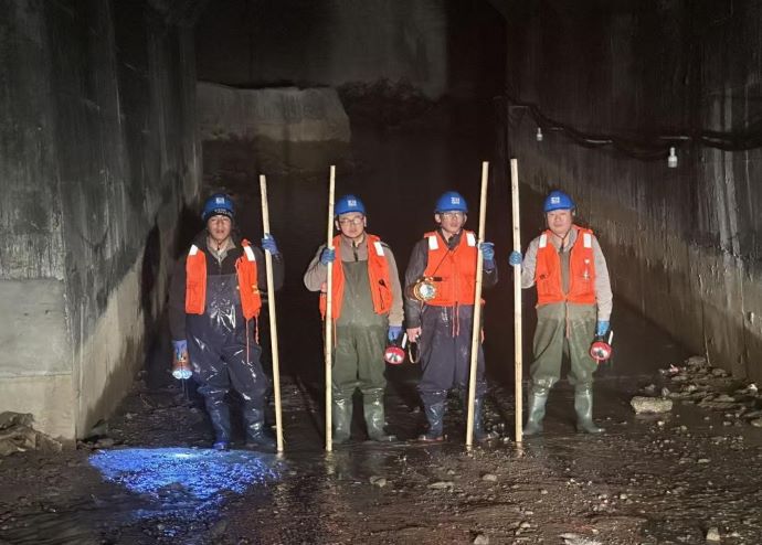 12月3日,公司組織對全長16.3公里的灌溉輸水洞開展全面檢查,重點(diǎn)排查長期運(yùn)行中可能存在的凍融破壞、巖體應(yīng)力變化等隱患。經(jīng)細(xì)致檢測,輸水洞整體運(yùn)行狀態(tài)良好,完全滿足今冬明春供水需求,為后續(xù)灌溉工作奠定了堅(jiān)實(shí)的安全基礎(chǔ)。