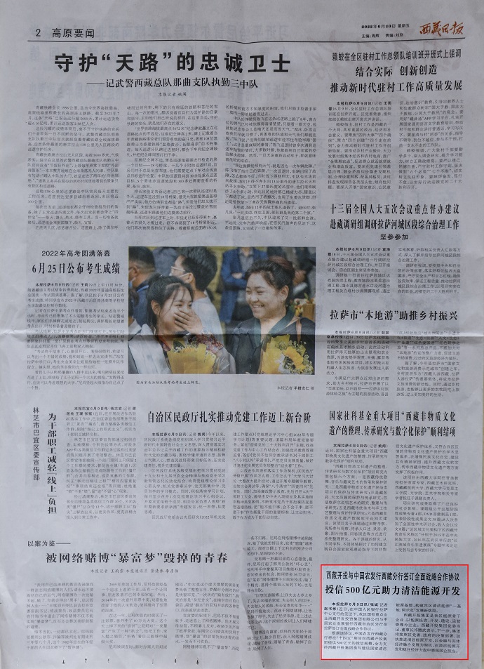 《授信500億元 助力西藏清潔能源開發(fā)》
