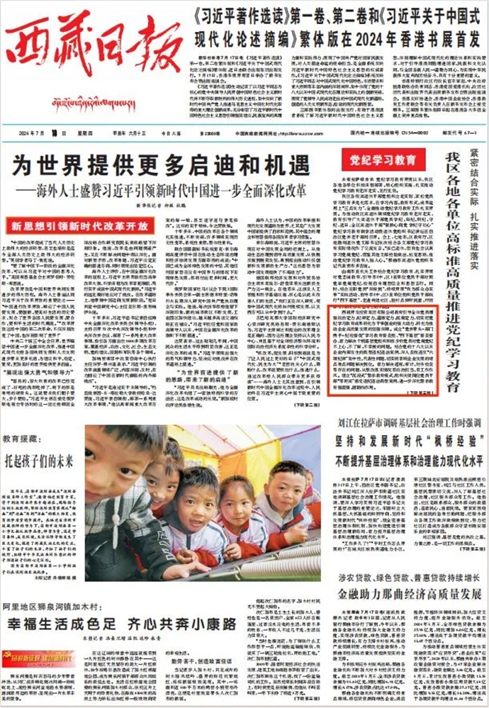 編者按:7月18日,西藏日報報道了《緊密結(jié)合實際 扎實推進落實 我區(qū)各地各單位高標準高質(zhì)量推進黨紀學習教育》文章。摘要如下: