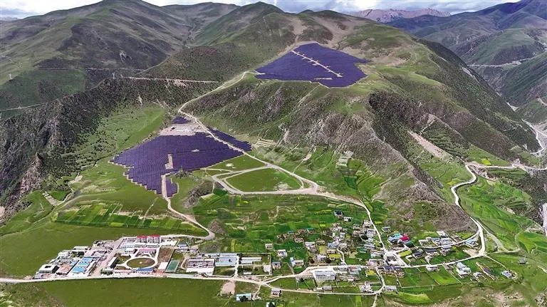 (俯瞰那曲市索縣熱瓦鄉(xiāng)熱熱村的50MW牧光互補(bǔ)儲(chǔ)能項(xiàng)目)