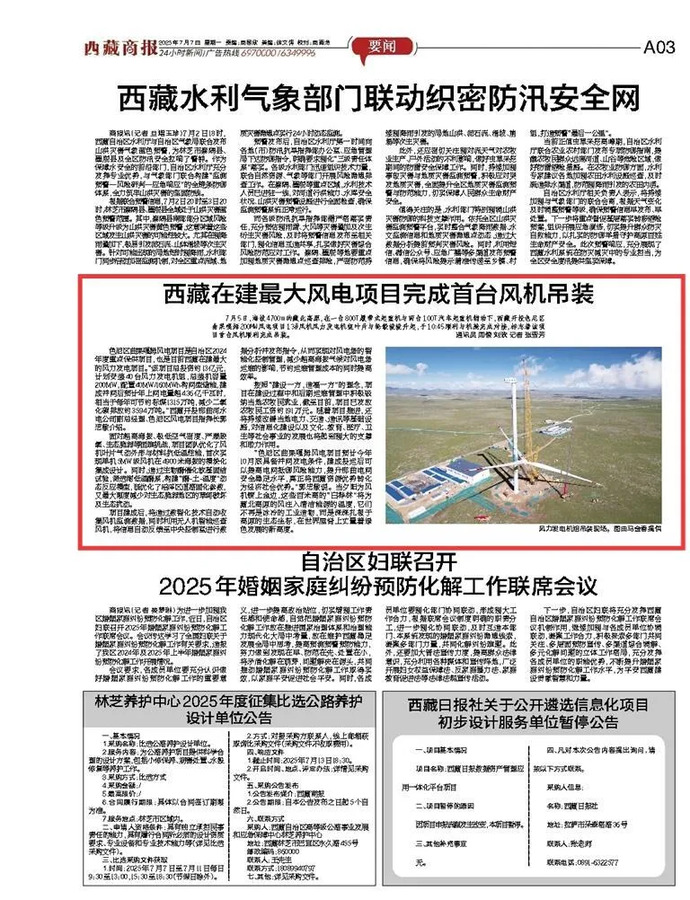 媒體報道丨西藏在建最大風(fēng)電項目完成首臺風(fēng)力發(fā)電機組吊裝