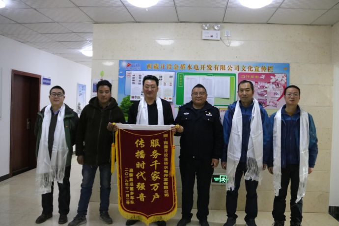 12月4日,尼屋鄉(xiāng)派出所副所長多吉帶領尼屋鄉(xiāng)扶貧車隊代表將“服務千家萬戶 傳播時代強音”錦旗遞送到西藏開投金橋水電開發(fā)有限公司(以下簡稱“金橋公司”)副總經(jīng)理李輝手中,表達對金橋公司的深深謝意。