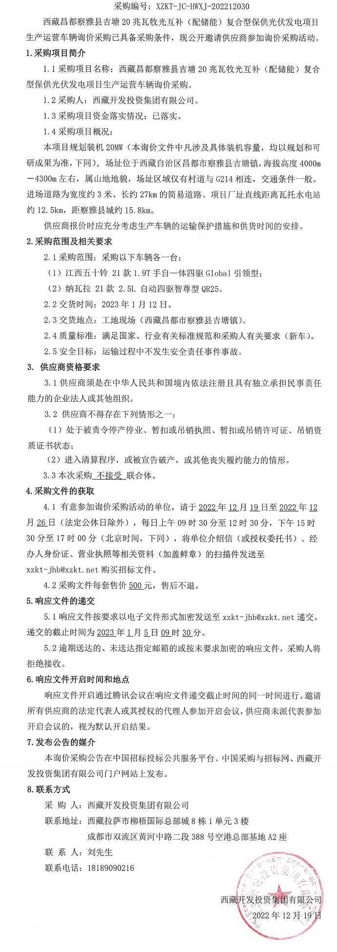 光伏發(fā)電項目生產(chǎn)運營車輛詢價采購公告