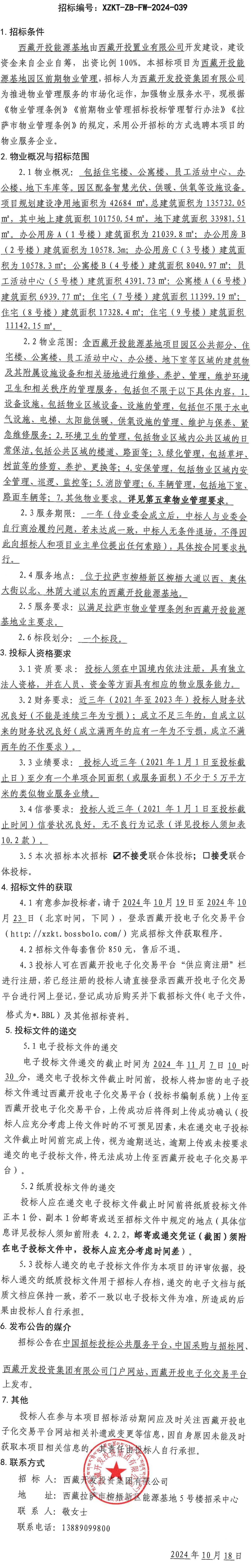 西藏開投能源基地園區(qū)前期物業(yè)管理招標公告